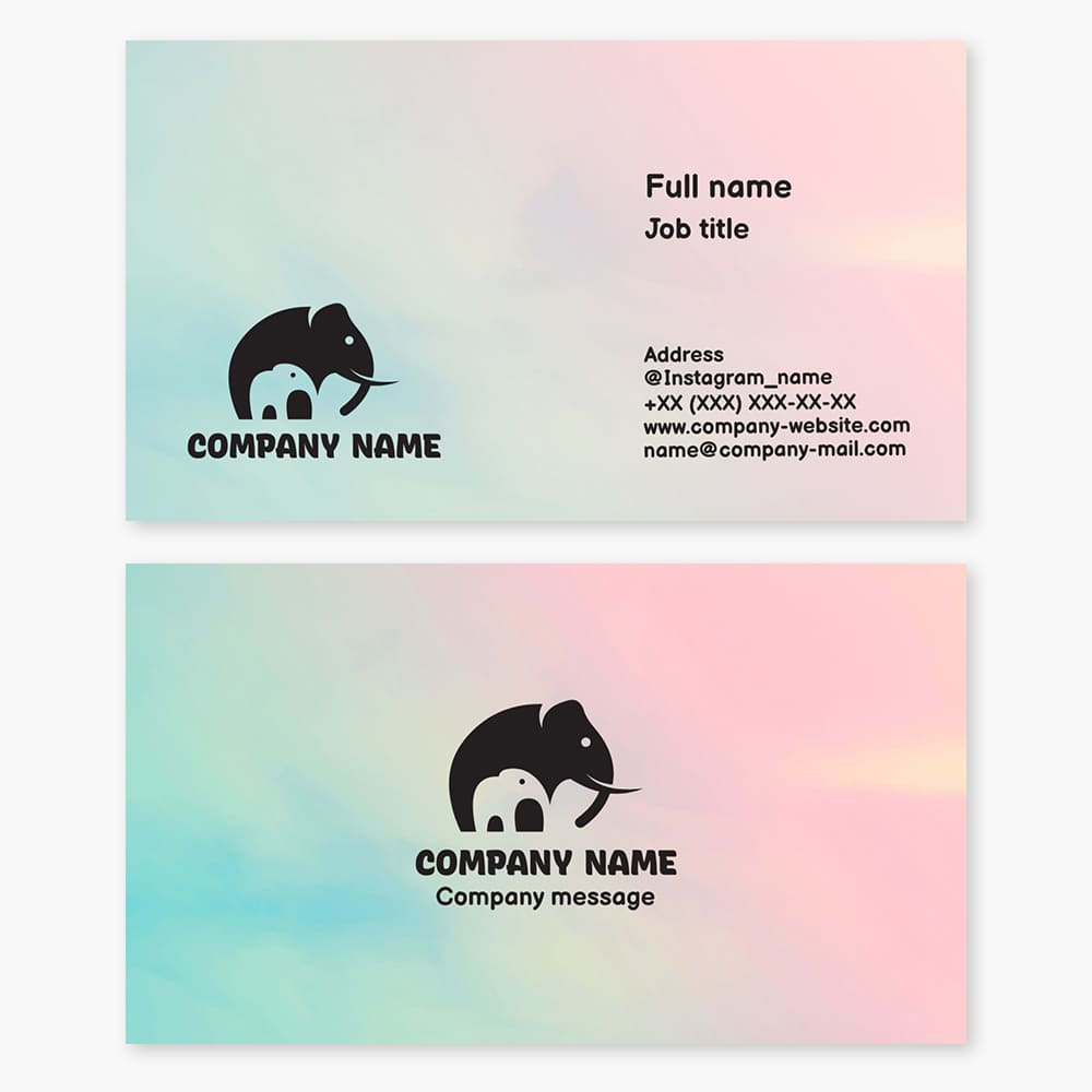 Business card template with elephant and baby elephant logo. Zoo, menagerie.