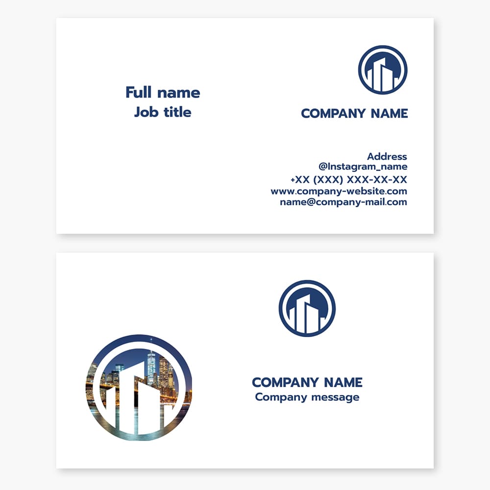 Business card template. Construction, development. Realtor. High-rise building.