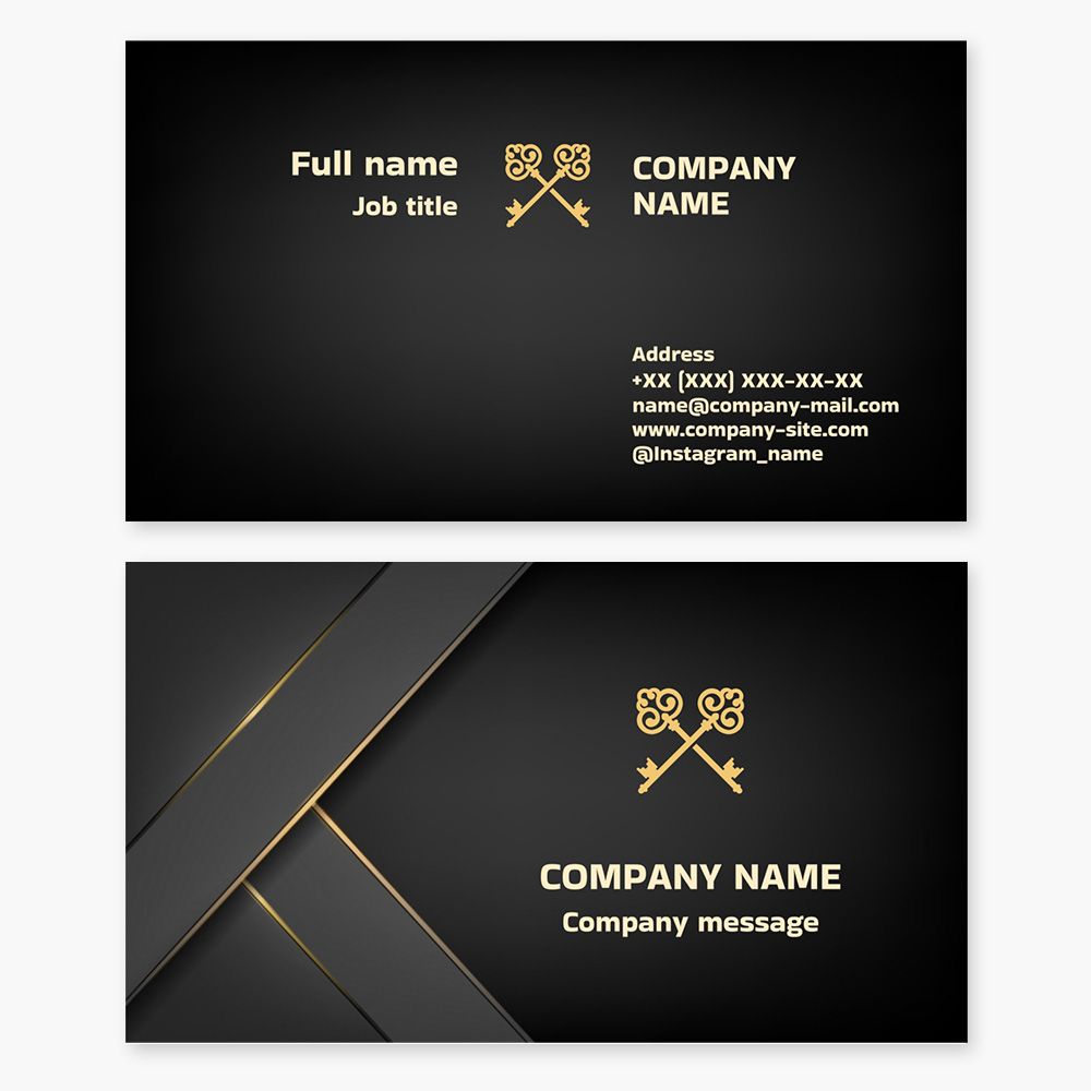 Gold Key Logo | Realtor | Real Estate Sales & Rentals | Black and Gold Business Card Template