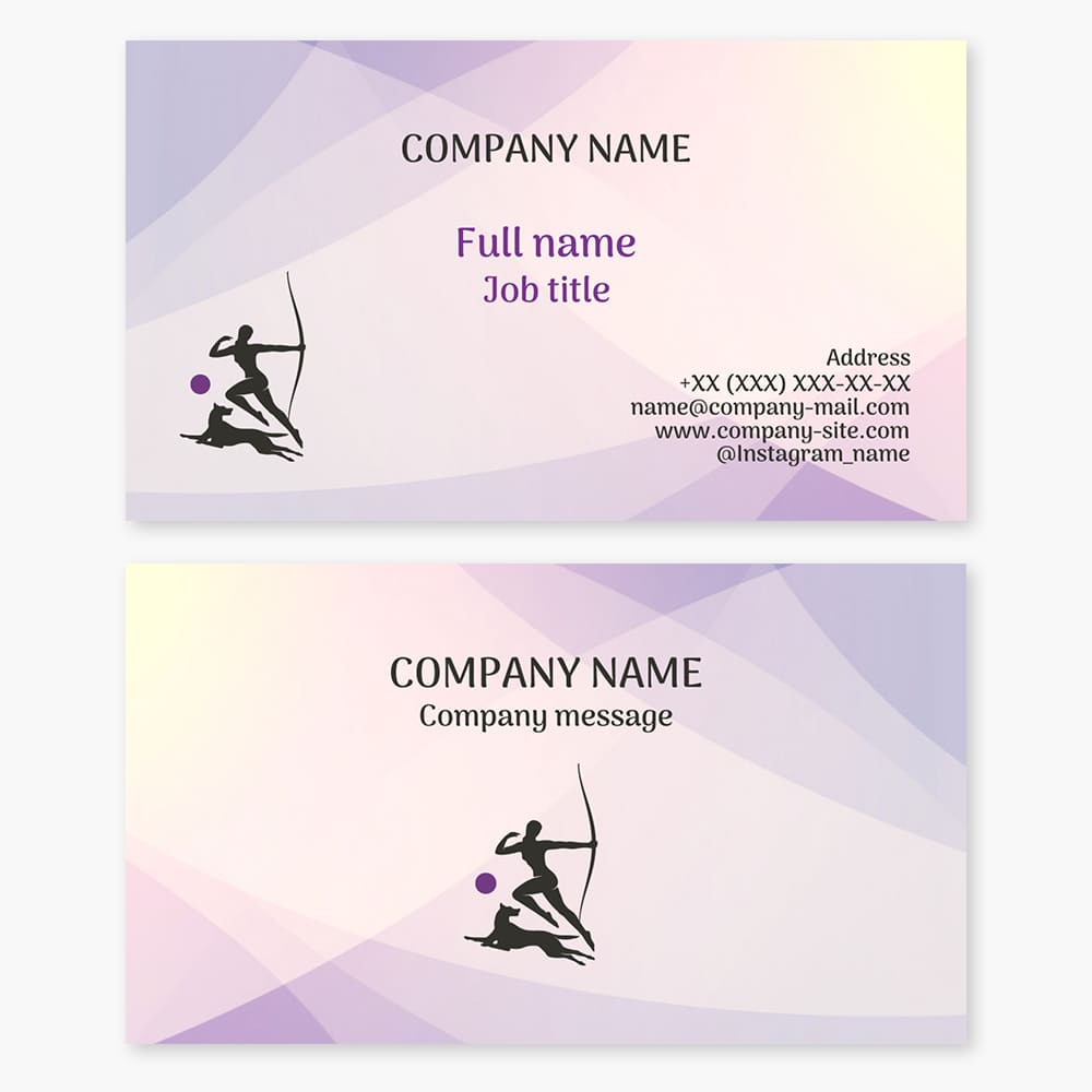 Business card template. Artemis, goddess of the hunt and wildlife. Abstract. A symbol of independence, strength, femininity, protection, and connection with nature.