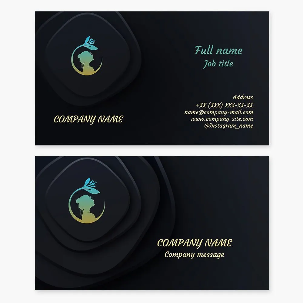 Generic business card template. Human. Communication. Personal coach. Deep leadership. Letter O.