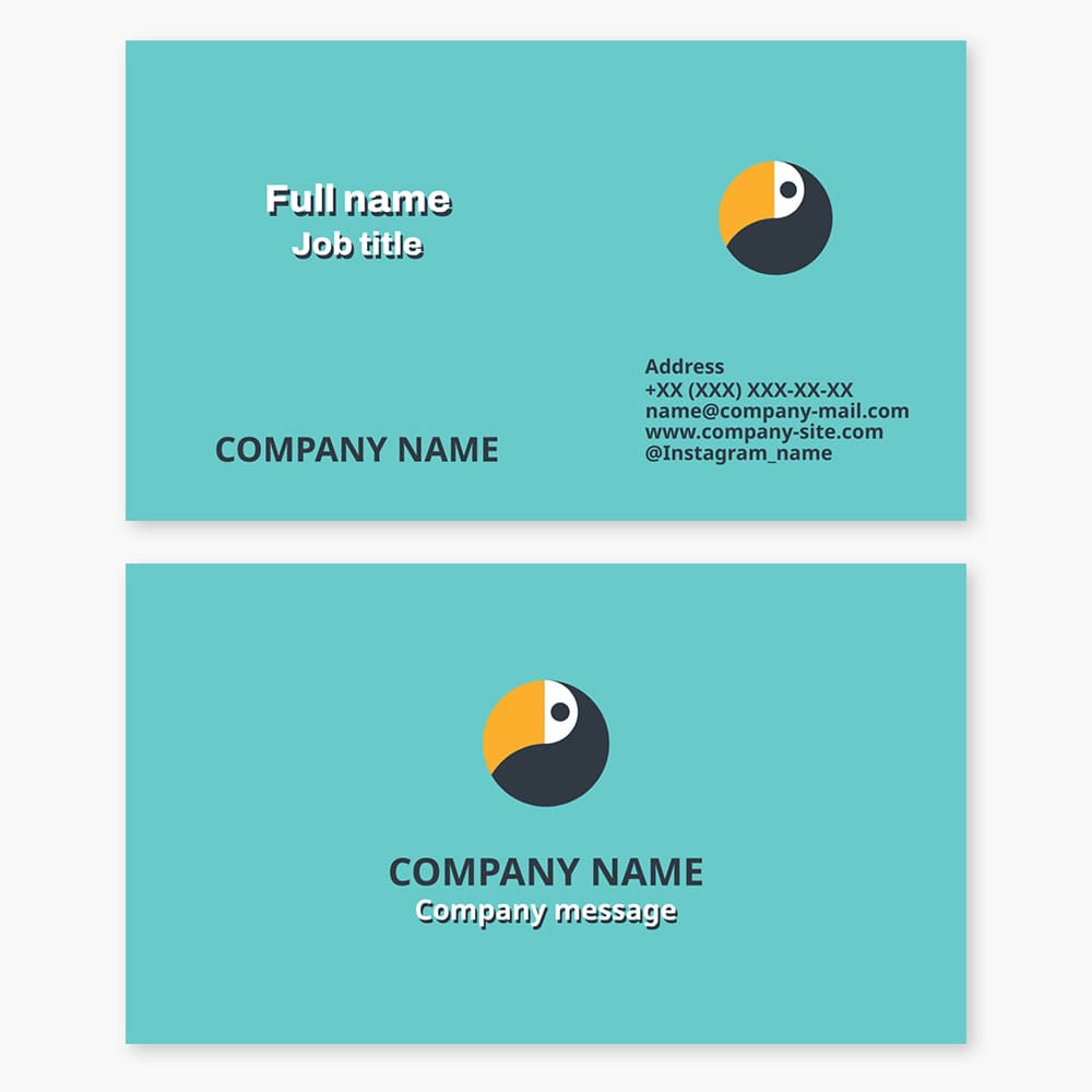 Business card template. Toucan. Symbol of success, luck, intelligence, and playfulness.