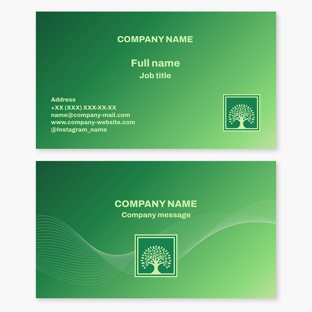 Eco-friendly business card template. Landscaping for yards and streets. Trees, bushes, grass.