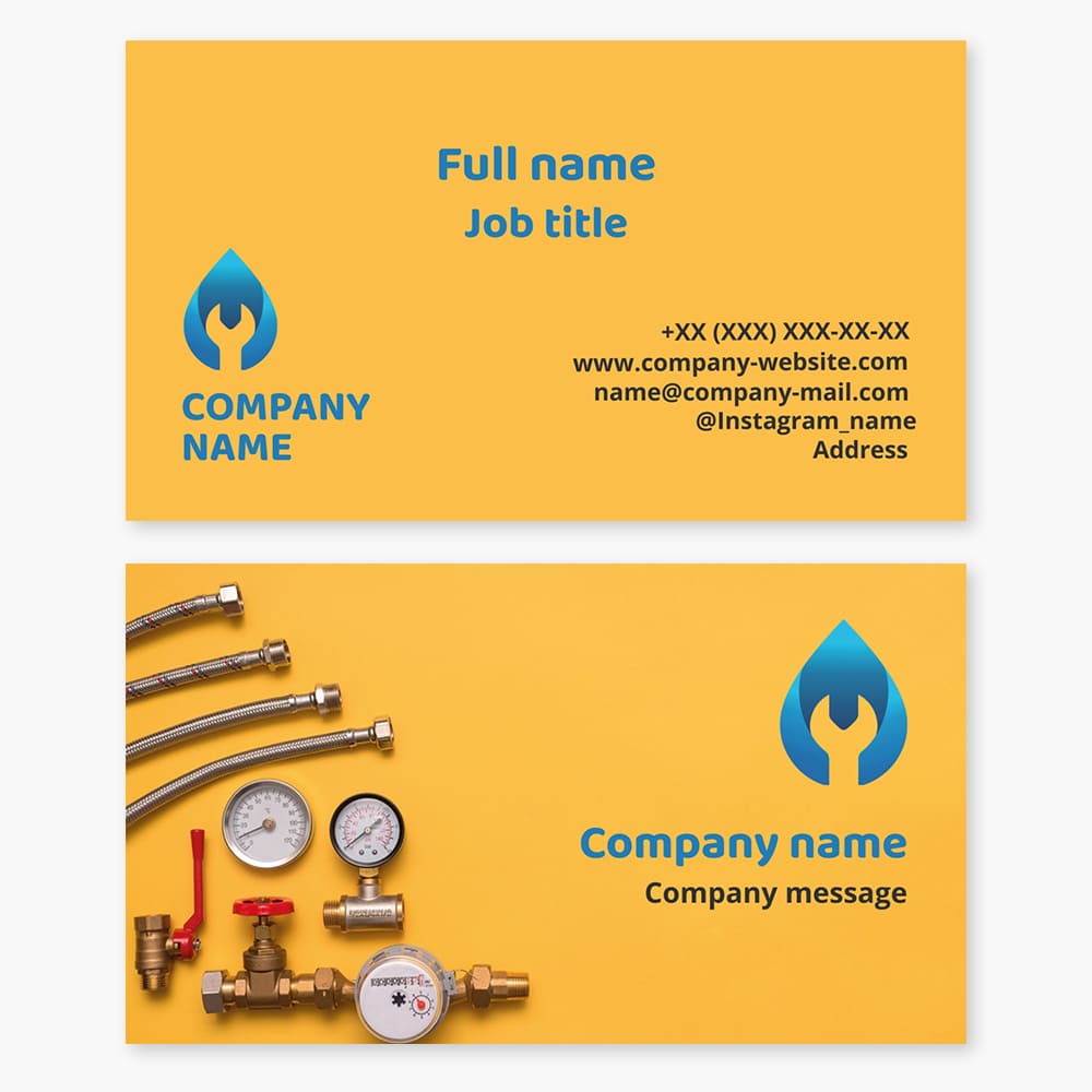 Business card template Water supply, plumbing, plumber, plumbing materials