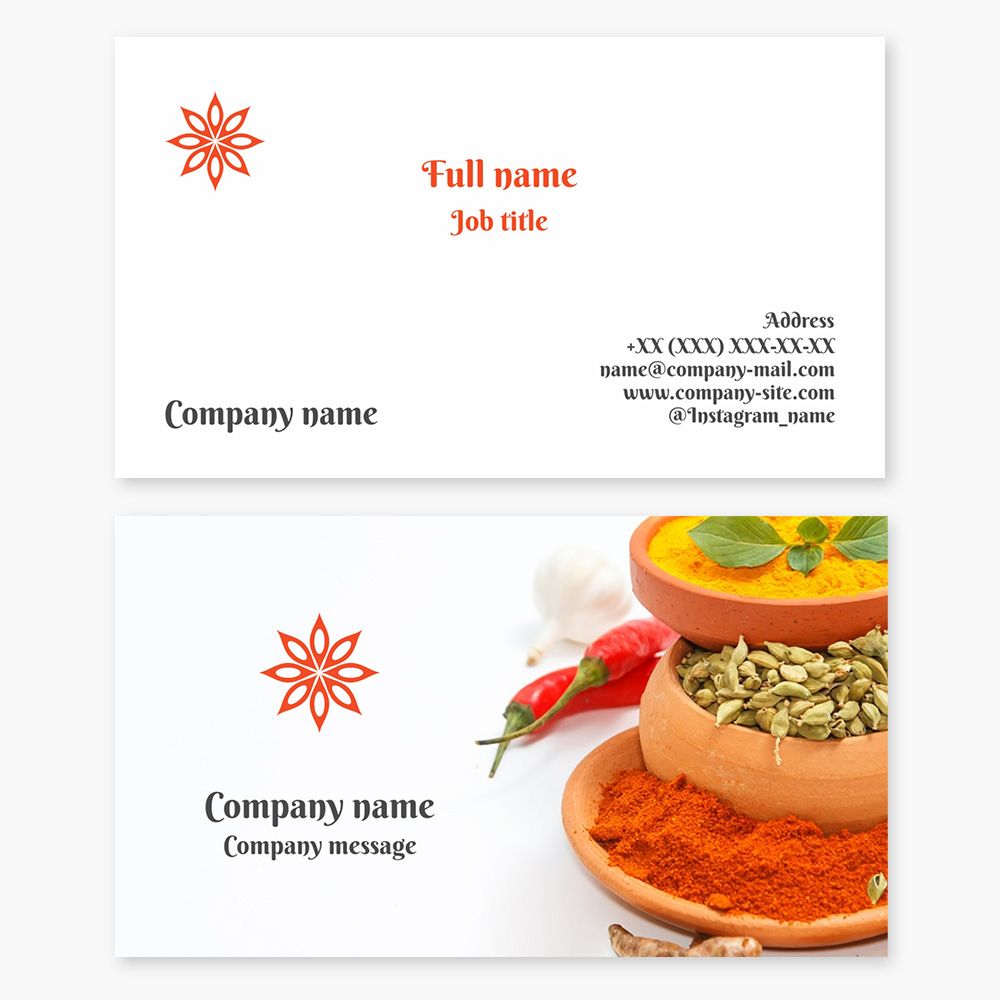 Healthy Eating business card template. Cafe, restaurant, or vegan farm. Plant leaves, spoon, and fork.