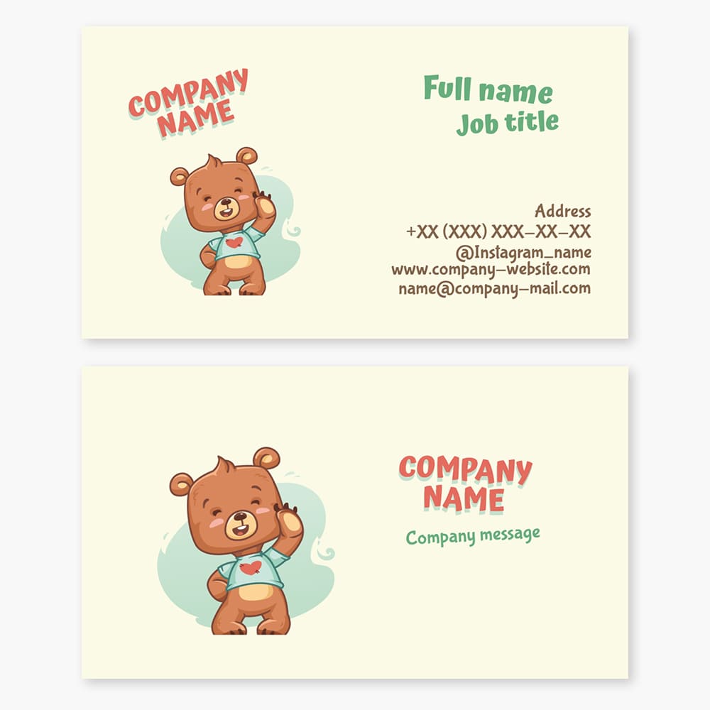 Business card template in children's style. Unicorn, fairy tale, children's products