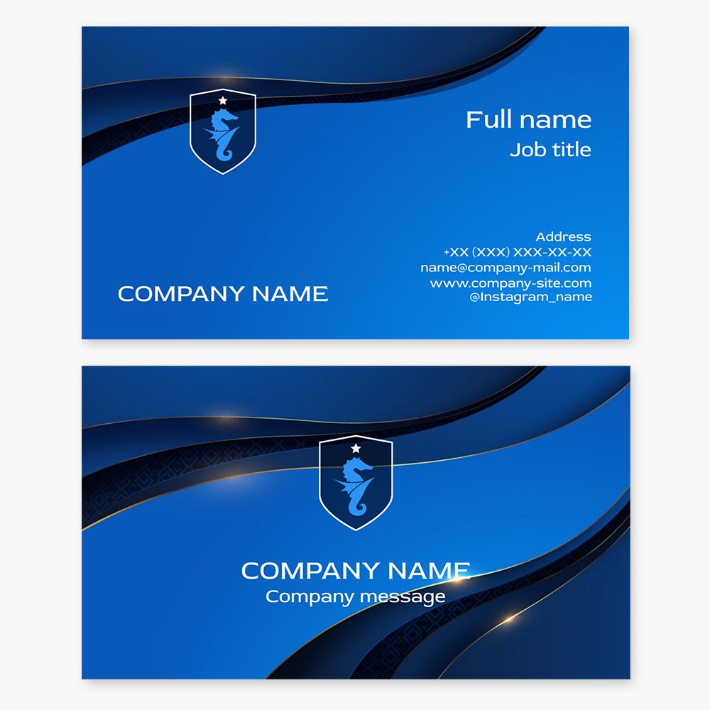 Business card template with the "Seahorse, Shield, Star" logo. Maritime safety. Ship insurance.