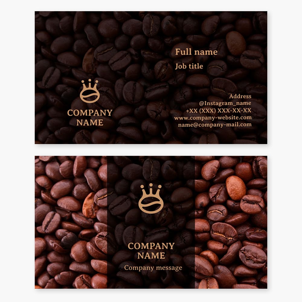 Coffee bean business card template. Coffee, crown.
