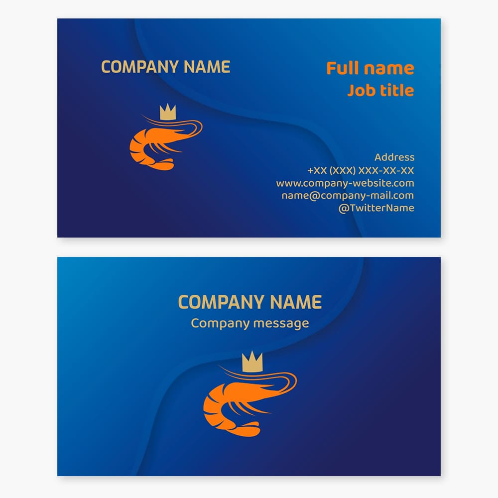 Business card template Shrimp, seafood, restaurant, mining, processing