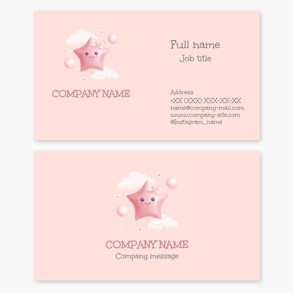 Business card template. Beach services and products. Sand, palm trees, sun, cocktail.