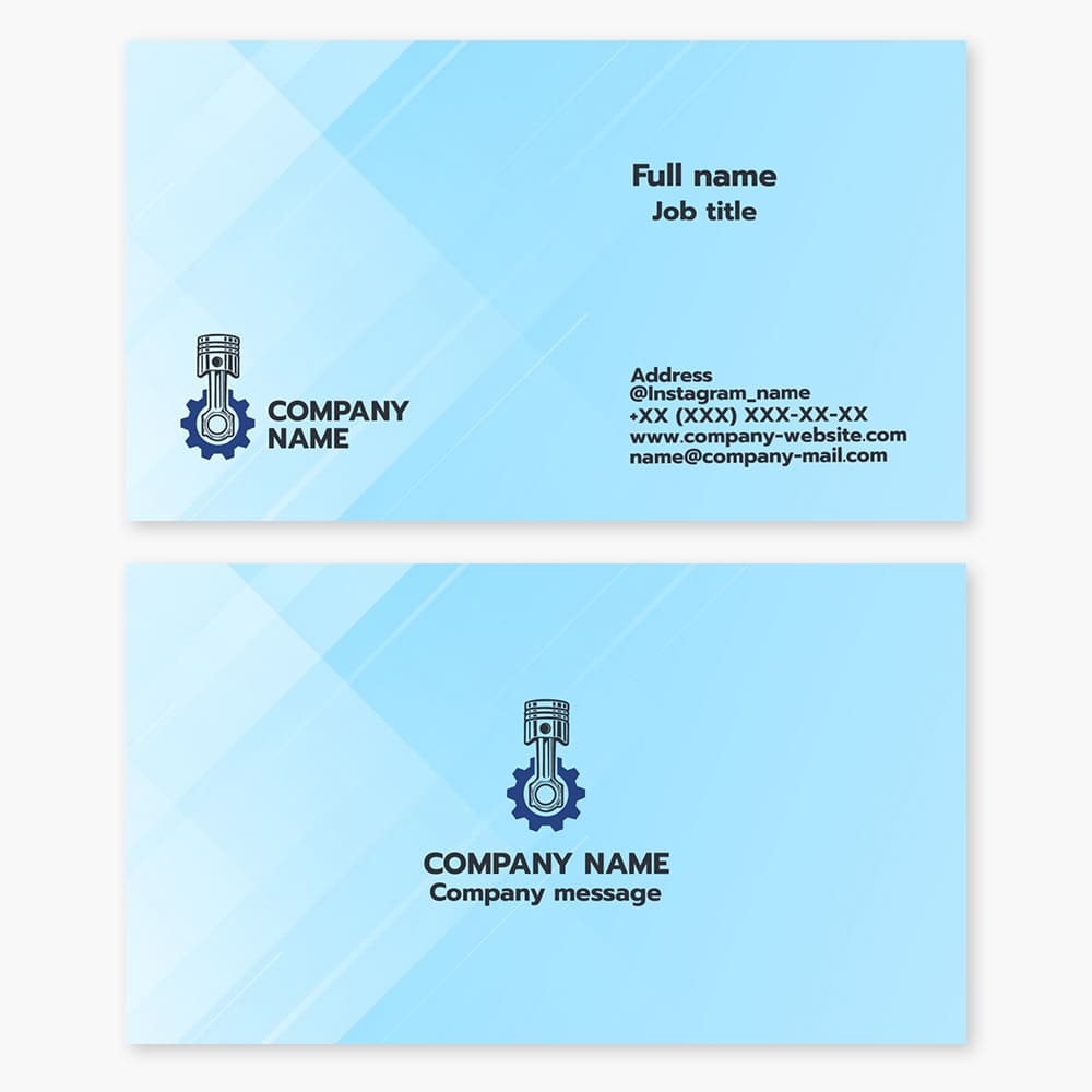 Business card template. Gear, protective construction helmet. Mechanical engineering company. Equipment manufacturing.
