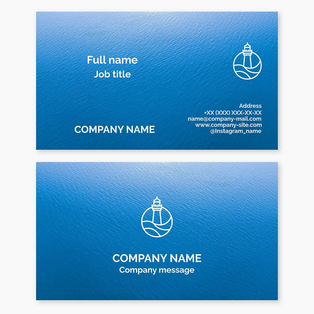 Business card template. Lighthouse. Hope, guidance, safety, resilience at sea. Letter O.
