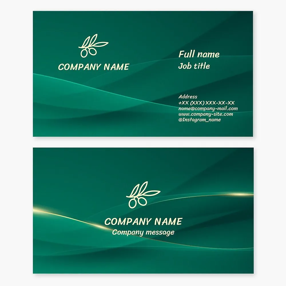 Business card template. Olive branch – a symbol of peace, reward, abundance, and reconciliation. Abstract. Production of award-winning products.