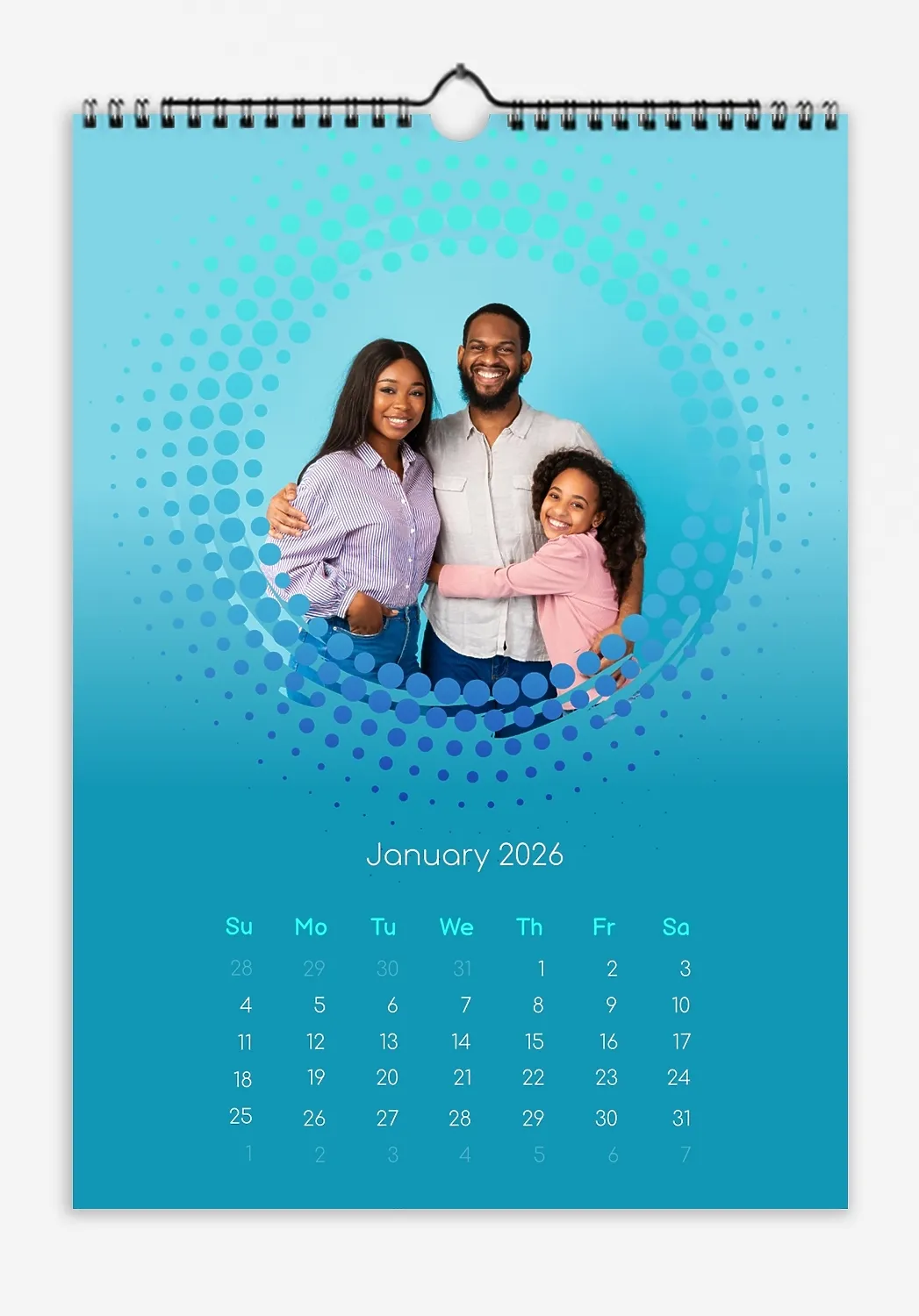 Calendar template "Lovely family with daughter in an accent focusing frame on a gradient background": the background from the photos is identical to the backgrounds of the calendar.